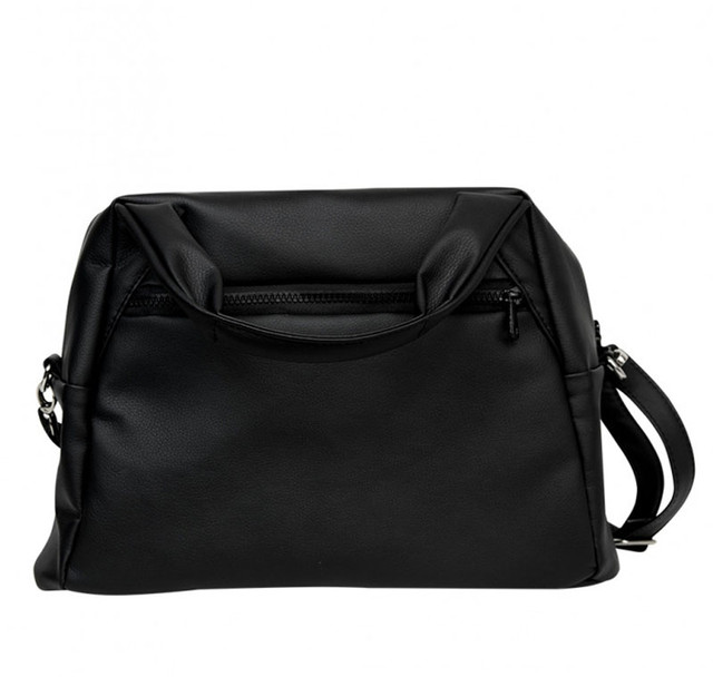 Стильна жіноча спортивна сумка з екошкіри з двома ручками і довгим ремінцем через плече чорна