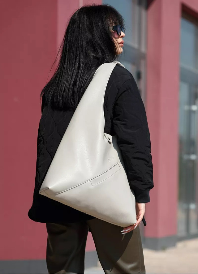 Зручна модна сіра жіноча сумка хобо містка, матова екошкіра (якісна штучна шкіра) + гаманець
