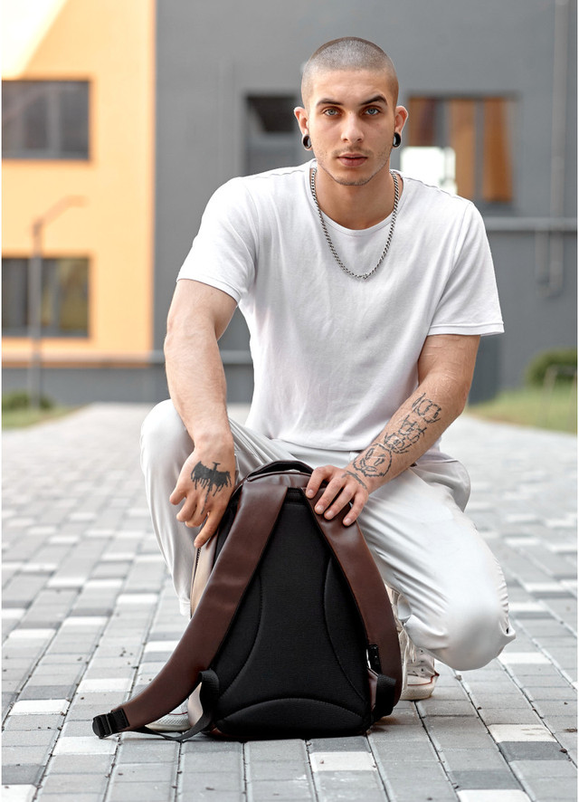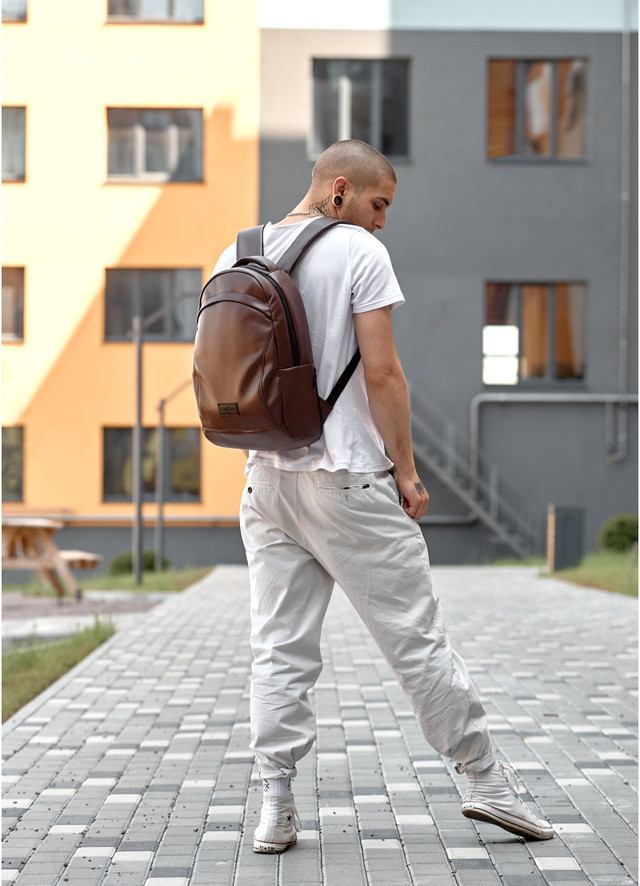 Коричневий чоловічий рюкзак з матової еко-шкіри міський, повсякденний, для ноутбука 15.6
