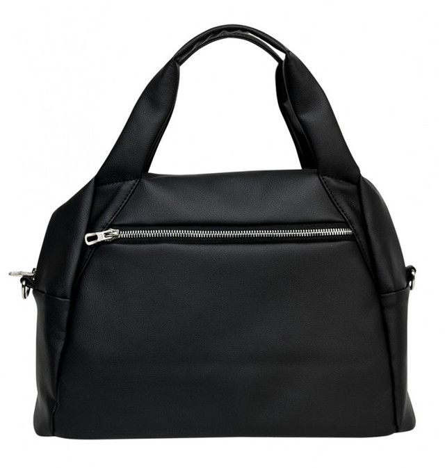 Чорна жіноча сумка велика міська з двома ручками і довгим ремінцем через плече, матова еко-шкіра