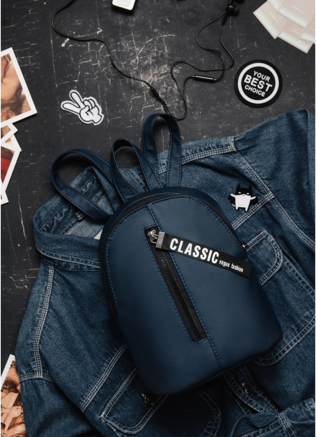 Маленький жіночий темно-синій рюкзак міський, повсякденний матова еко-шкіра